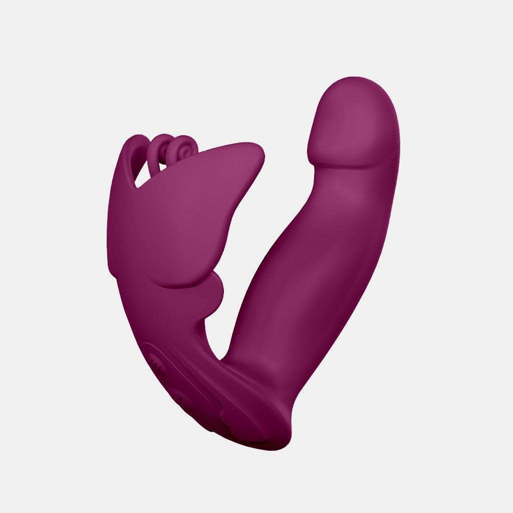 Butterfly sine vingede armer omfavner klitoris og G-punktet ditt for en blandet, tåkrøllende nytelse.