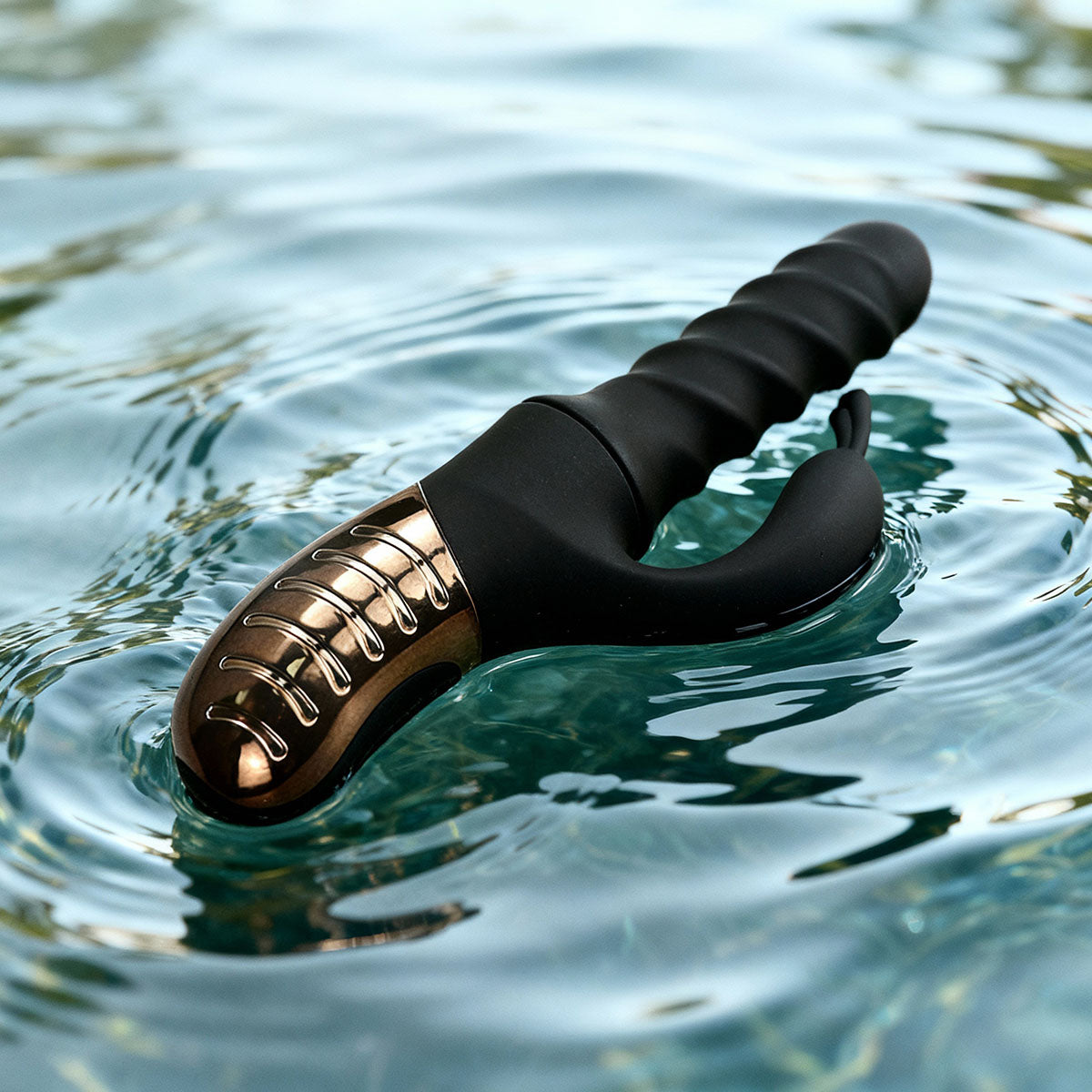 Meet Drill Rabbit by Cosara, the first rabbit vibrator that doesn’t just vibrate… it drills, twists, and spirals into your deepest desires. The shaft features rotating ridges designed to massage the G-spot, while the rabbit-ear stimulator envelops the clitoris with precise, quivering pressure. Wrapped in smooth black silicone and crowned with a luxurious gold accent, this toy strikes the balance between elegance and intense eroticism. Its quiet-by-design motor lets you play wherever you desire… while its IPX6 waterproof rating means shower sessions just got a lot more thrilling.