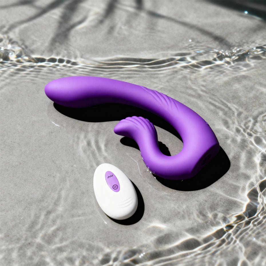 - Dual-ended vibrator designed for hands-free intimacy
