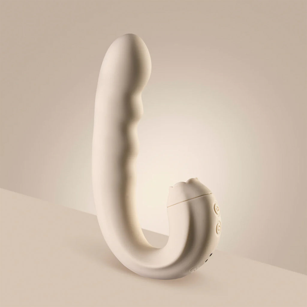 The Triple Vibe is a dual-headed massager that offers both internal and external stimulation. While your clitoris gets some love, the thrusting vibrator will give your g-spot the attention it needs. Made of flexible silicone, this vibe will make you go numb from pleasure. The rotating, licking and vibrating functions are independently controlled, but are able to be used simultaneously. It feels great on the skin and works with water-based lubricants. Plus, it's waterproof for easy cleaning and shower use! A quick 120-minute charge gives you up to 50 minutes of playtime, providing reliable and rechargeable pleasure wherever you are.