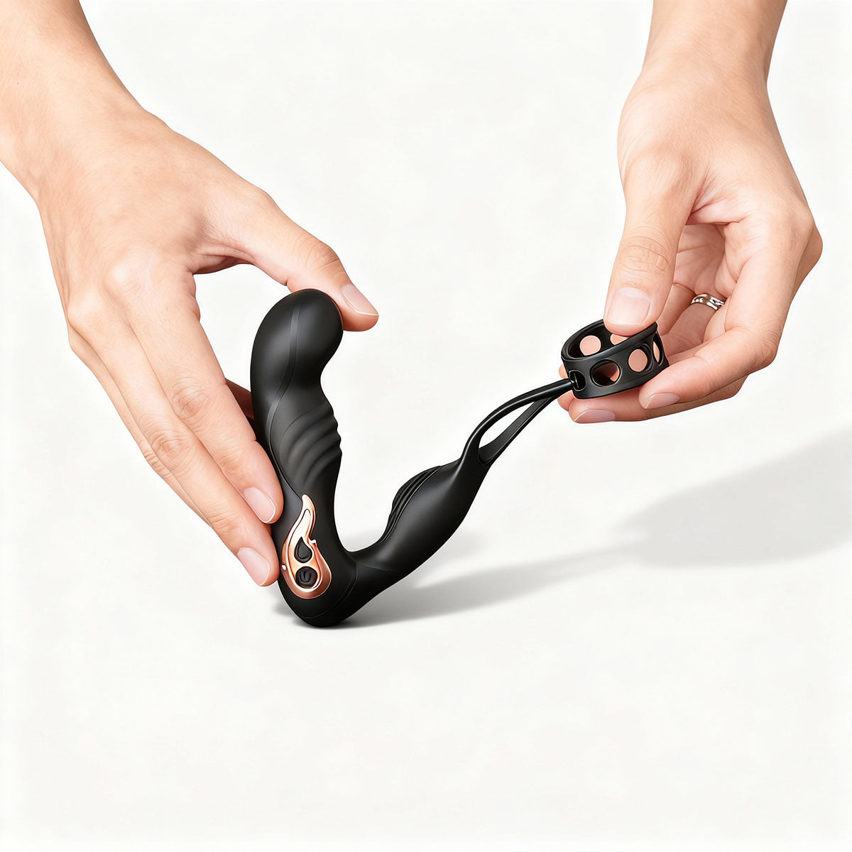 Meet Zelle, a precision-built prostate massager with a built-in cock ring connection that keeps everything in place while delivering synchronized stimulation to both pleasure zones. With dual motors, it doesn’t just vibrate, it syncs up pleasure from inside and outside, pulsing from the prostate straight to the shaft. Designed for comfort, control, and deeper exploration, Zelle is perfect for users who want prostate pleasure plus erection support and dual stimulation. Whether solo or with a partner, Zelle locks in and stays exactly where you want it, so your only job is to enjoy.